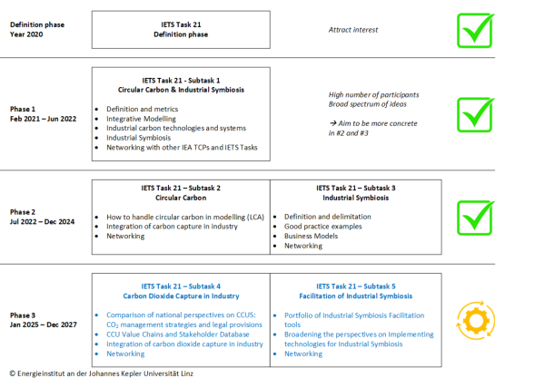 Die neuen Subtasks starten voraussichtlich im Jänner 2025 und laufen über 3 Jahre. Eine enge Kooperation mit anderen IEA Technologieprogrammen und anderen Tasks des IETS-TCP werden angestrebt.