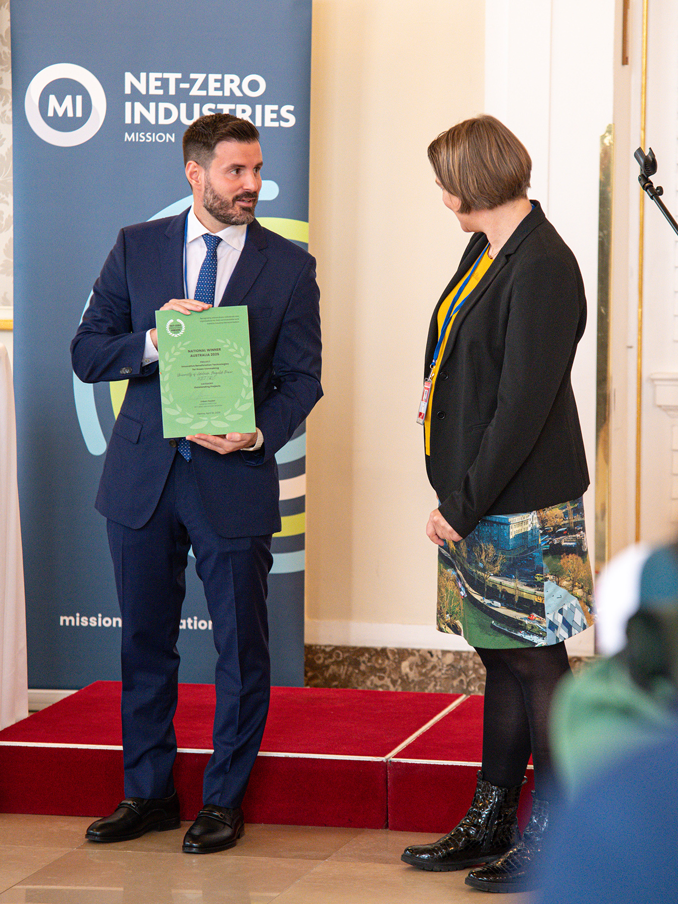 Der Mission Innovation Net-Zero Industries Award wird in den Kategorien „Outstanding Project", „Female Innovator" und „Young Talent" vergeben und bringt führende Innovator:innen aus aller Welt zusammen. Die Preisträger:innen wurden am 10. April 2026 im Rahmen des International Vienna Energy and Climate Forum (IVECF) in der Hofburg Wien präsentiert.