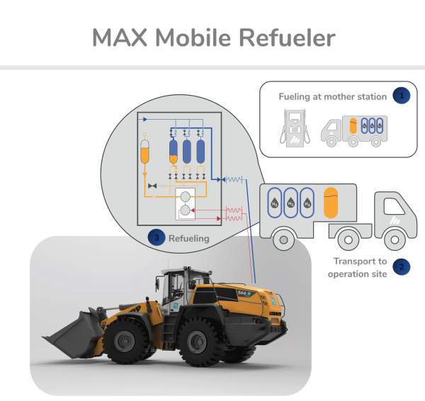 Parallel dazu wurde bei Liebherr die Entwicklung der ersten großen Baumaschinen mit Wasserstoffantrieb in Angriff genommen, um in wenigen Jahren große Radlader und große Raupenbagger der ersten Generation mit Wasserstoffmotor anbieten zu können, sodass anhand dieser Entwicklungen auch die Expertisen notifizierter Stellen und weiterer Wissensträger in den Task eingebracht werden können.