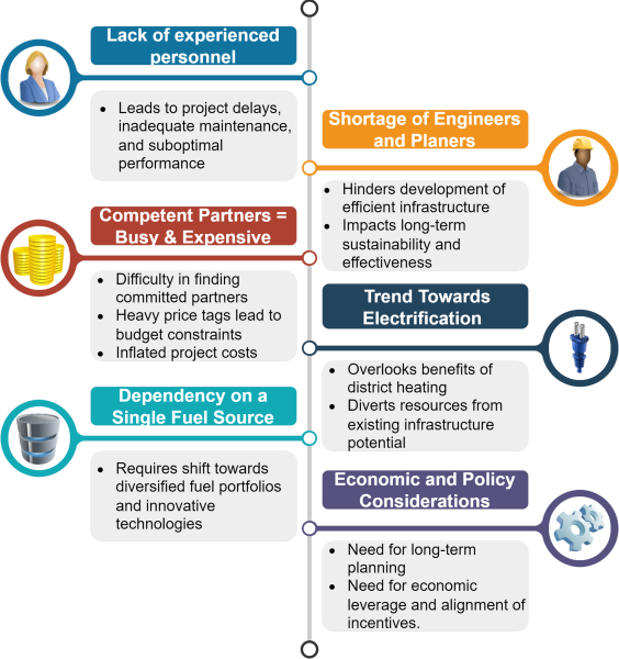 - Sammlung von Wissen von verbesserten Lösungen für die Integration von EE-Anlagen in bestehende FWK-Systeme, sowie Aufzeigen des effizienten Umgangs mit nicht-technische Marktbarrieren und Chancen.