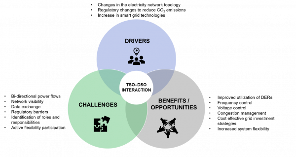 Es wird erwartet, dass die Beherrschung der komplexen Wechselwirkungen zwischen volatiler Erzeugung und flexiblen Verbrauchern über alle Spannungsebenen ein wesentlicher Bestandteil eines sich entwickelnden aktiven Energiesystems werden wird. Damit ergibt ein erhöhter Bedarf für die Interaktion zwischen Übertragungsnetzbetreiber und Verteilernetzbetreiber.