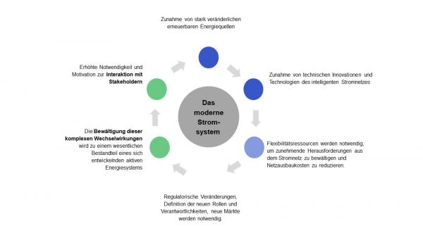 Das Stromsystem erlebt durch zahlreiche Einflussfaktoren einen Paradigmenwechsel in der Art und Weise, wie Strom erzeugt, übertragen und verteilt wird. Einflussfaktoren sind dabei nicht nur technische Entwicklungen im Bereich Digitalisierung und erneuerbarer Energien, sondern auch politische, klimatische und gesellschaftliche (Klimakrise, Green Recovery-Pläne nach der Corona-Pandemie, Wirtschaftskrise).