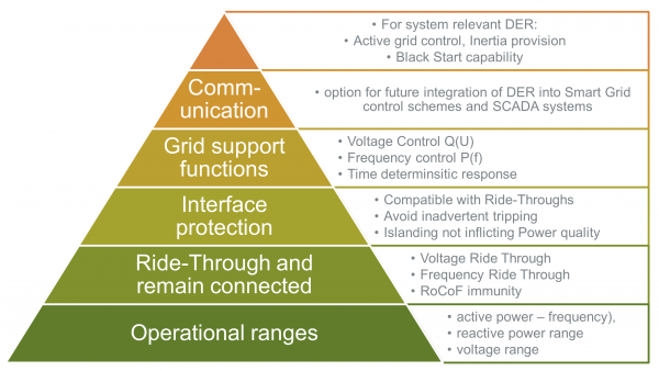 Auf Basis dieser Analyse wurde die Kompatibilität der aktuellen Rahmenbedingungen mit zukünftigen Szenarien einer hohen Dichte von PV bewertet und Anforderungen an die Gestaltung von Anforderungen an dezentrale Erzeugungsanlagen und Leistungsumrichter für Photovoltaik erarbeitet.