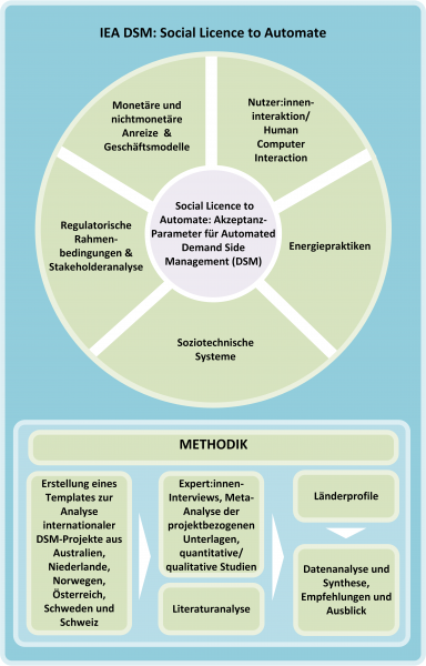Im Projekt wurden entscheidende Faktoren in den Bereichen sozio-technische Systeme, technologiebasiertes Interaktionsdesign, Energiepraktiken, Akteursrollen, Geschäftsmodelle und Anreizsysteme identifiziert, analysiert und zu ihrer Rolle in Akzeptanz- und Vertrauensbildung evaluiert. Im Detail betrachtet wurden dabei eingesetzte Argumentationslinien, involvierte Stakeholder, technische Parameter der Automatisierung, monetäre und nicht-monetäre Anreize, für Endkund:innen bereitgestellte Interfaces und darin integrierte Interaktionsfeatures, sowie existierendes Flexibilitätspotenzial. Mithilfe der Informationen aus den unterschiedlichen internationalen Projekten wurden Analysen zu verschiedenen Themen durchgeführt.