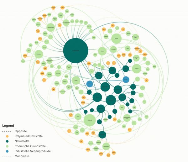 Ein wesentliches Ergebnis dieser Technologierecherche ist ein interaktives Beziehungsdiagramm, welches die möglichen Produktionsketten von biobasierten Rohstoffen hin zu Fertigprodukten übersichtlich und nachvollziehbar darstellt.