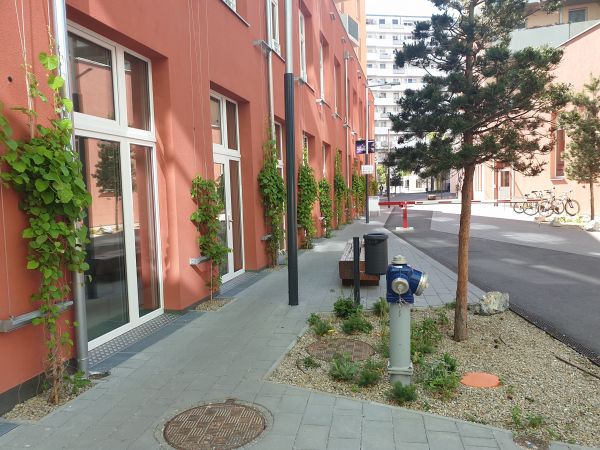 Die Begrünung und nachhaltige Gestaltung von Stadtquartieren als Strategie der Städte zur Anpassung an den urbanen Wärmeinseleffekt und an die Herausforderungen des Klimawandels, wie eine Zunahme der Starkregenereignisse, gewinnt national und international zunehmend an Bedeutung, hat aber bisher weit weniger Beachtung erhalten als beispielsweise gebäudebezogene Technologien zur Anpassung. Dass durch umfassende Begrünung relevante Effekte im dicht verbauten städtischen Raum zu erwarten sind, konnte bereits in einer Reihe von Studien gezeigt werden. Doch der Umsetzung steht eine Reihe von Hemmnissen im Weg (hoher Komplexitätsgrad in Planung und Umsetzung, viele involvierte Akteur:innen, widersprüchliche rechtliche Bestimmungen, technologische Fragen, Kosten und Erhaltung bzw. Pflege etc.).