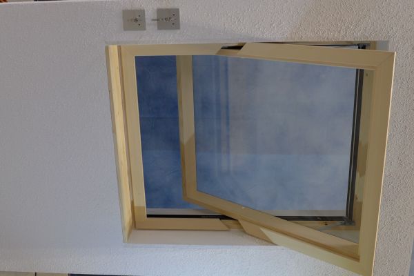 - (Typ A) Raumseitig flächenbündiges, nach innen öffnendes Dreh-Fenster (mit Lüftungsstellung)