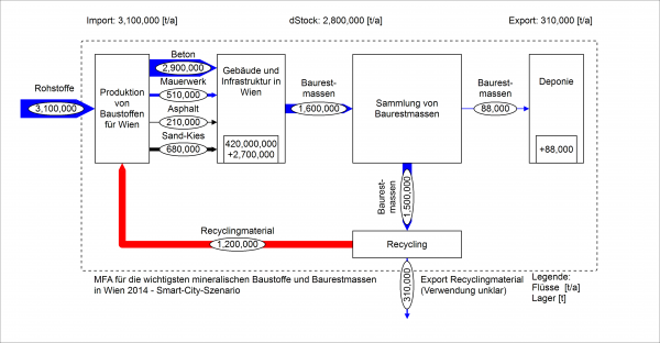 - Die Simulation/Projektion der Verfügbarkeit von Baurestmassen und deren Verwertungspotenziale bietet die Datengrundlage zur Herstellung von Sekundärbaustoffen für die mittel- und langfristige Zukunft.