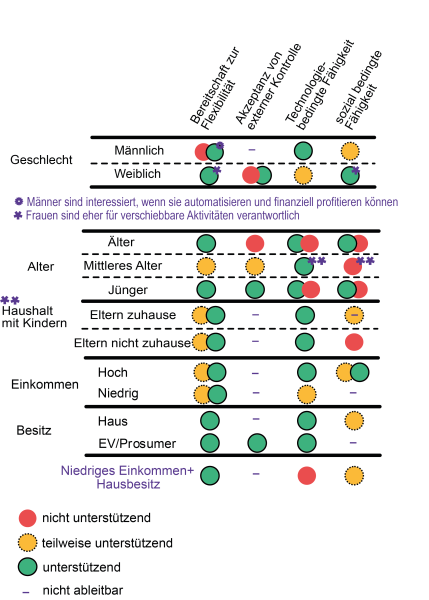 Based on these findings, the concept of flexibility readiness was defined using the dimensions of capacity, capability, and willingness. This was categorized into three flexibility readiness levels (low, medium, high) and described through associated intersectional diversity profiles. Derived recommendations for inclusive Demand Side Management (DSM) include low-tech solutions, digital education offerings, household-wide education initiatives, and support for low-income households through subsidies. Inclusive energy communities require simplified participation processes and the inclusion of local stakeholders. Comprehensive data collection is also essential for developing more targeted participation opportunities.
